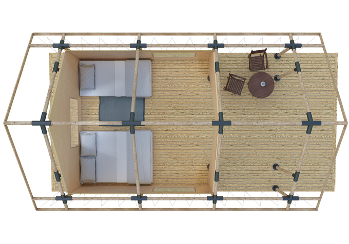 В данной комплектации используется уникальная система съёмных стен утепления, позволяющая адаптировать модуль к погодным условиям.